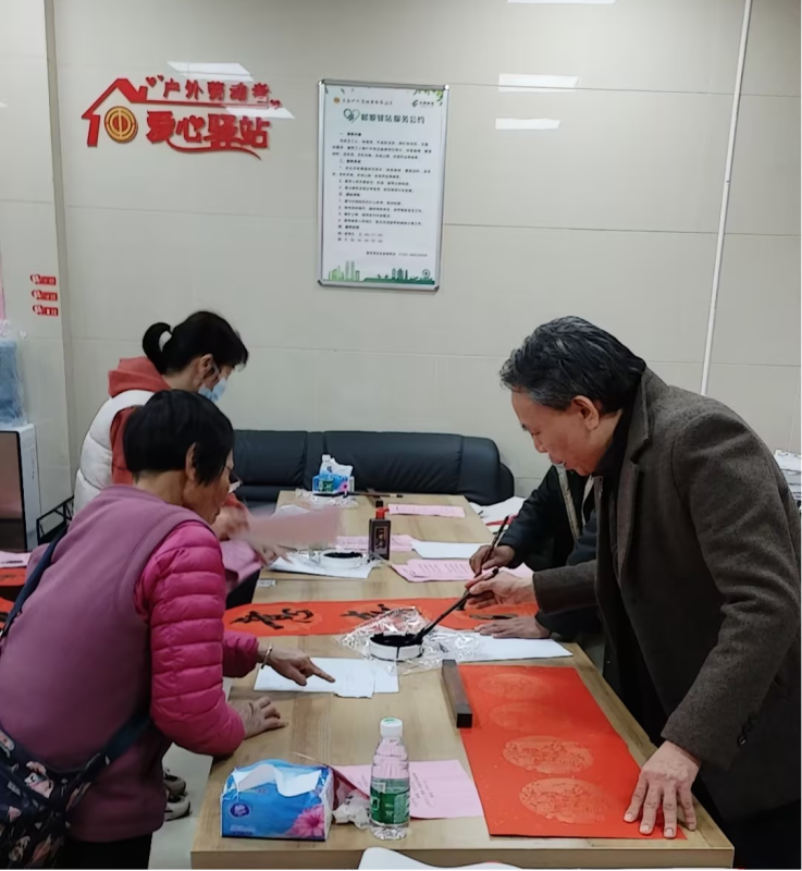 南朗支局、興圃路支局等工會(huì)驛站邀請(qǐng)市工人文化宮書(shū)法家、組織市分公司書(shū)法愛(ài)好者現(xiàn)場(chǎng)揮毫,給附近居民、戶外勞動(dòng)者等群體免費(fèi)送福、送春聯(lián),現(xiàn)場(chǎng)氣氛熱烈,得到參與者的廣泛好評(píng)。