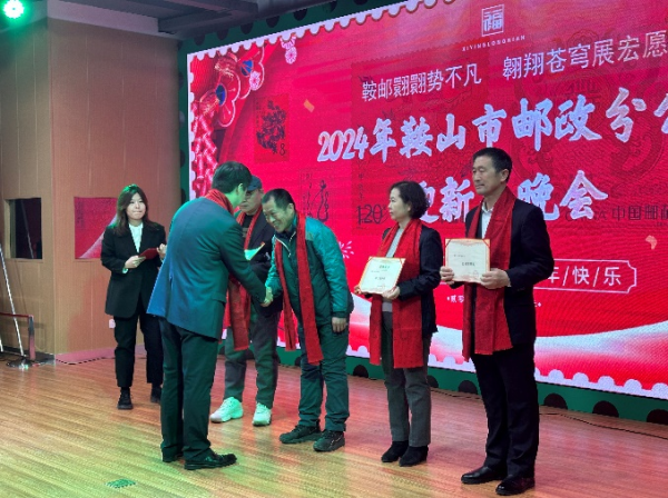 2月4日下午5點30月,鞍山郵政首屆迎春晚隆重舉行。此次晚會經過長達一個月的精心策劃和籌備,采用現場演繹和線上直播方式,受眾覆蓋鞍山全地區郵政職工。本次晚會涵蓋歌曲、舞蹈、樂器、小品、朗誦、情景劇等多種演繹形式,為鞍山郵政職工送帶來一份溫馨的新春祝福,得到了鞍山郵政公司領導及職工高度重視和大力支持,展示了鞍山郵政人的風采。本次晚會以“鞍郵翾翾勢不凡 翱翔蒼穹展宏愿”為主題,老帶新傳幫帶思想為指引,新老兩代郵政人齊聚一堂通過一個又一個精彩紛呈的節目,傳遞著帶有郵政使命的交接棒。同時晚會市公司領導班子為本年度退休職工送上印有龍年生肖圖案的紅圍巾和春節慰問品,還為退休職工頒發了忠于職守獎和忠誠奉獻獎,體現了鞍山市郵政分公司對老同志的關心與關愛,真正實現公司以人為本的經營理念。歲月銘刻榮光,青春承載希望,兩代郵政人心手相牽,共聚合力,定能打贏鞍郵自強三年攻堅戰!晚會在《因為我們是一家人》中緩緩落幕。