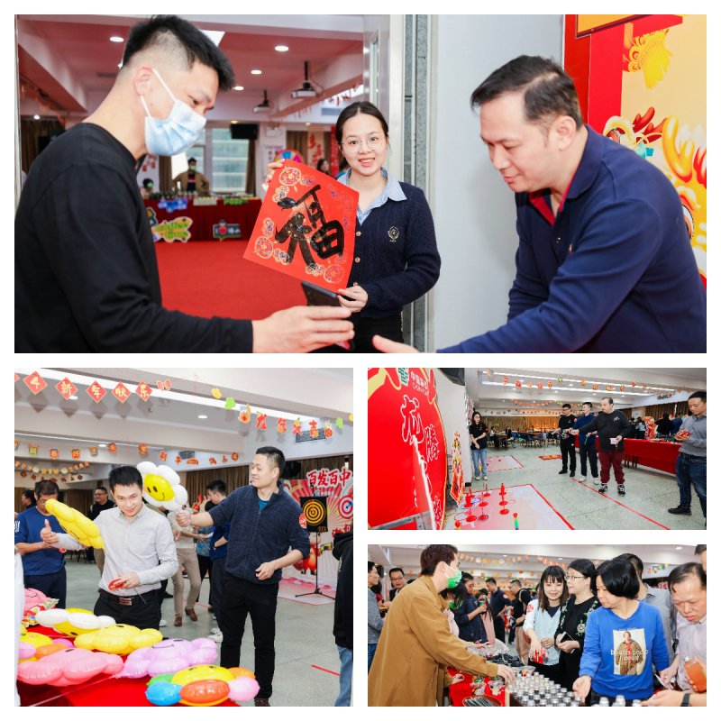 員工們穿梭在各種游戲項目中,“火力全開”“百發百中”“招財進寶”“龍騰虎擲”……個人游戲比拼緊張刺激,團隊游戲彰顯協作精神,大家排著長龍躍躍欲試,歡呼聲、驚嘆聲此起彼伏。活動期間,員工們還拿著各種道具創意打卡、合影,濃濃的年味遍布每一個角落,每個人的臉上都洋溢著歡樂的笑容。