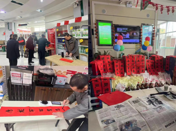 中衛郵政工會組織縣(區)分公司網點積極邀約書法大師到網點手寫對聯,并邀約周邊商戶、存款客戶等到現場參加活動。網點人員并利用下班時間走訪商戶,送去對聯和祝福。