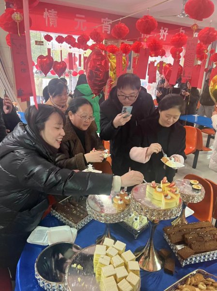 現(xiàn)場(chǎng)氣氛火熱,一排排紅色的燈籠和飄揚(yáng)的氣球?qū)⒒顒?dòng)現(xiàn)場(chǎng)襯托得喜慶祥和,200多條燈謎懸掛在燈籠下,吸引100多名前來(lái)猜燈謎的員工。活動(dòng)現(xiàn)場(chǎng)還擺放了精美的甜品臺(tái),大家邊品嘗可口的蛋糕邊猜燈謎,現(xiàn)場(chǎng)歡聲笑語(yǔ)、熱鬧非凡。