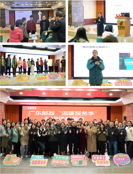 為深入貫徹落實黨的二十大和中國工會十八大精神,關心關愛員工的心理訴求和心理健康,結合廣東省郵政工會“溫暖服務季”送教活動的開展,揭陽、廣州市分公司落地舉辦了主題為“說積極的話,干有意義的工作”心理賦能關愛培訓。兩個地市分公司共有工會干事、金融網點負責人、理財經理、寄遞業務等170余名營銷人員參加培訓。