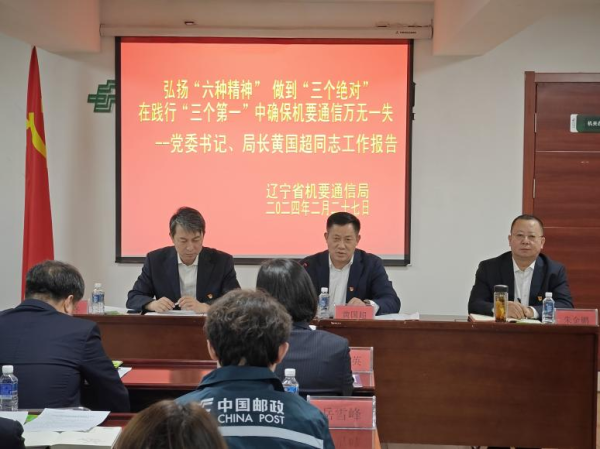 2月27日,遼寧省機要通信局召開2024年工作會議暨第四屆第二次全體職工會員大會,審議通過局黨委書記、局長黃國超題為“弘揚‘六種精神’、 做到‘三個絕對’在踐行‘三個第一’中確保機要通信萬無一失”的工作報告,全面總結分析了2023年全省機要通信所做的主要工作及取得的成績,并客觀地指出存在的不足。同時,圍繞省分公司工作會議精神和“遼郵自強”三年行動方案對2024年的重點工作進行了詳細部署。