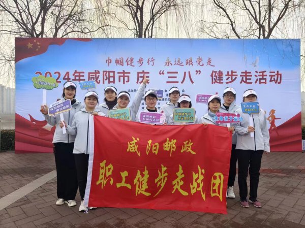 在第114個“三八”國際婦女節來臨之際,由咸陽市婦聯、咸陽市總工會等單位聯合舉辦的“巾幗健步行 永遠跟黨走”慶“三八”國際婦女節健步走活動,于3月6日上午在濱河西路河堤路拉開了帷幕,咸陽市80多個參賽隊1000余人參加,咸陽郵政女工委積極組織10名女職工代表隊參加了活動。