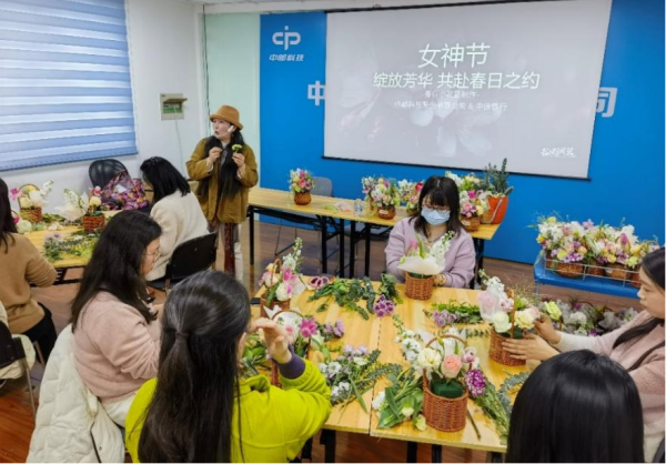 工會邀請專業的花藝老師現場指導,大家跟隨著老師的講解,將絢麗多彩的花朵和綠葉裝點入精美的花籃中,沒多久一支支鮮花在大家的巧手下變成了錯落有致、獨具匠心的花籃藝術品,充分展示了大家的創意和藝術天賦。大家在花香中沉醉,將心情傾注于每一株花朵,感受著插花的愉悅和放松。插花中團隊的合作促進了凝聚力,增進彼此的交流與合作。活動結束后大家將花籃擺在辦公室,讓辦公室瞬間綻放出生機勃勃的氣息,為工作環境增添了一抹盎然的春色。
