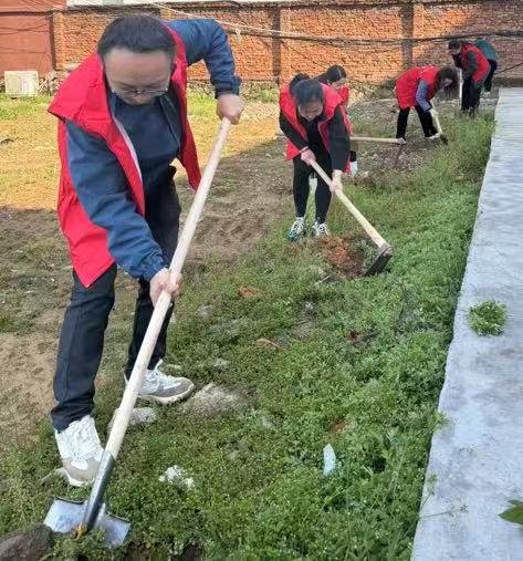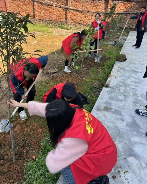 大家到達植樹基地后,個個精神抖擻、熱情高漲,扶正樹苗、掩土、培實新土,讓一棵棵樹苗在春天里迎風招展,為荒野增添了勃勃生機。