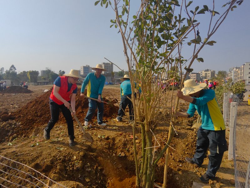 湛江郵政各級(jí)基層工會(huì)“手植一棵樹 綠化一片天”員工義務(wù)植樹活動(dòng)的范圍,遍布湛江的五縣四區(qū)。員工們?cè)诼檎聟^(qū)白水坡村種下了紫荊花樹,在徐聞縣下洋鎮(zhèn)地塘村種下了紫檀樹、桃花芯樹,在吳川市吳陽鎮(zhèn)文塔村種下了馬尾松樹,在雷州市龍門鎮(zhèn)譚邊村種下了秋楓樹,在遂溪縣遂城鎮(zhèn)白屋村沙坡大道種下了黃花風(fēng)鈴木……他們用一顆顆小樹苗,為湛江的魅力鄉(xiāng)村增添點(diǎn)點(diǎn)新綠,用實(shí)際行動(dòng)共建綠色美麗湛江。