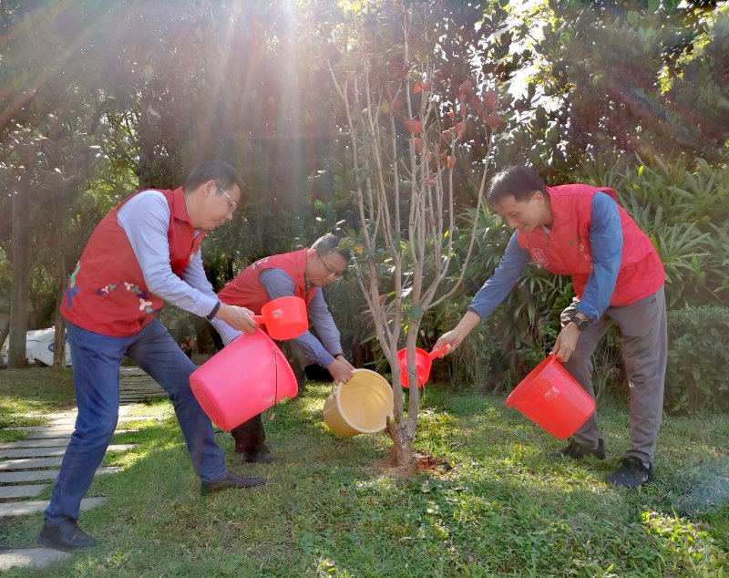 3月12日下午,春風(fēng)和煦,陽光明媚,在深圳市寶安區(qū)萬福廣場(chǎng),參加活動(dòng)的郵政員工身著義工服,手提紅膠桶,揮鍬鏟土、扶樹填坑、培土踩實(shí)、澆水除草……在廣場(chǎng)周邊各個(gè)綠化區(qū)忙碌。經(jīng)過員工們數(shù)小時(shí)的勞動(dòng),一株株新栽樹苗迎風(fēng)挺立、搖曳生姿,一叢叢綠植煥發(fā)出蓬勃生機(jī)和綠色希望。