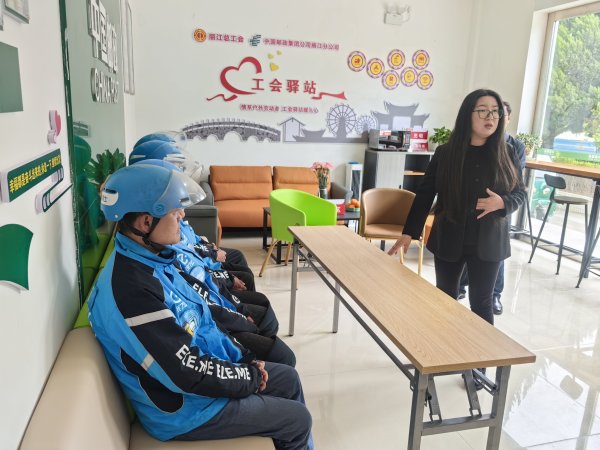 啟動儀式結(jié)束后,參加活動的一行人前往象山西路郵政所工會驛站參觀。同時,古城區(qū)交警大隊民警在驛站為大家進(jìn)行了一堂生動有趣的“交通安全知識微課堂”宣講。參觀結(jié)束后,市總工會黨組書記、常務(wù)副主席郭秀芬指出:麗江郵政自建設(shè)工會驛站以來,積極發(fā)揮郵政行業(yè)點多面廣、資源豐富的特點,不僅切實為廣大戶外勞動者解決了吃飯難、喝水難、休息難、如廁難等現(xiàn)實困難,還開展了形式多樣的公益活動,讓勞動者真切感受到了工會驛站的溫暖,對營造全社會尊重勞動、關(guān)愛勞動者的良好氛圍起到了示范作用。麗江郵政表示:郵政工會驛站熱忱歡迎大家來歇腳、充電,就像驛站墻上寫的那句話一樣:幸福是靠奮斗出來的,休息一下,繼續(xù)出發(fā)!我們將持續(xù)提升全市7個郵政工會驛站的服務(wù)能力,使之成為廣大勞動者“幸福站”的同時,也成為工會組織宣傳政策、提升技能,弘揚(yáng)三種精神的陣地,傳播大愛和正能量,讓戶外勞動者在感受到麗江溫度的同時,匯聚力量,為推動麗江高質(zhì)量發(fā)展貢獻(xiàn)自己的力量!
