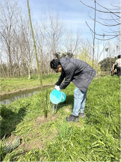 在植樹現場,大家分工協作,揮鍬鏟土、栽苗培土、提水澆灌,并在每顆樹上掛上了雙方共建未來的美好寄語,收獲了共同勞動的喜悅。經過一下午的辛勤勞動,一顆顆象征著希望和美好的樹苗扎根沃土,展露出勃勃生機。