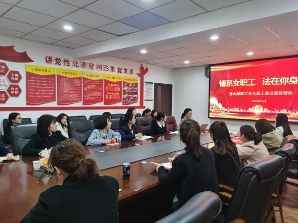 3月29日,秀山郵政工會開展“情系女職工 法在你身邊”普法宣傳活動。參加本次活動的有機關女職工,網點支局長、理財經理及部分女職工,秀山縣總工會老師作為特邀嘉賓參加本次活動。