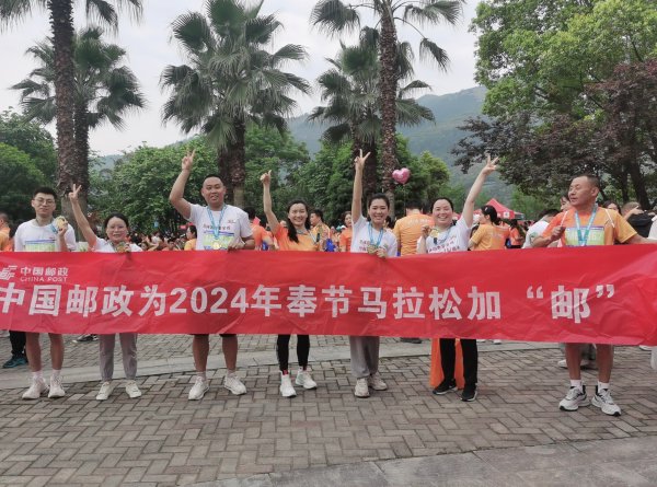4月13日,奉節郵政工會組織12名員工參加2024“三峽之巔 詩橙奉節”馬拉松比賽。
