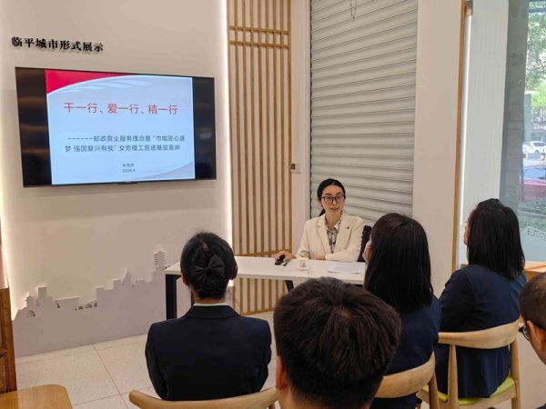 2024年4月15日下午17:00,杭州市郵政工會聯合臨平區分公司及分工會在臨平區藕花洲大街郵政所舉辦了“守好紅色根脈·班前十分鐘”暨女勞模工匠示范性宣講活動,藕花洲大街郵政所全體員工及臨平區分公司、支局營業管理人員等30余人參加了本次宣講活動。