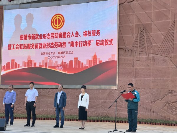 為進(jìn)一步提升工會(huì)組織凝聚力,更好地集中服務(wù)新就業(yè)形態(tài)勞動(dòng)者,充分發(fā)揮工會(huì)驛站服務(wù)效能,曲靖市組織開展新就業(yè)形態(tài)勞動(dòng)者建會(huì)入會(huì)和維權(quán)服務(wù)“集中行動(dòng)季”暨工會(huì)驛站服務(wù)新就業(yè)形態(tài)勞動(dòng)者百日集中行動(dòng)于4月15日啟動(dòng)。曲靖市城區(qū)分公司組織30名新就業(yè)形態(tài)勞動(dòng)者群體代表參與啟動(dòng)儀式。