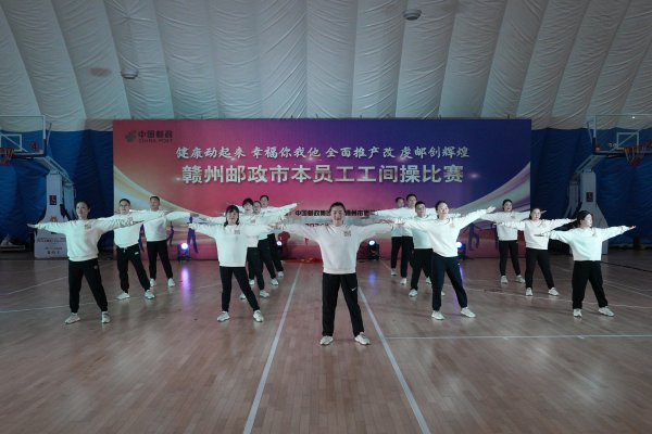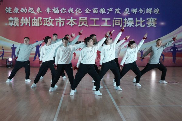 4月10日,贛州市郵政工會舉辦了“健康動起來 幸福你我他 全力推產改 虔郵創輝煌”市本員工工間操比賽。共有來自市本四個部門工會的7支隊伍參賽。此次比賽旨在豐富員工業余文化生活,提高職工身體素質,促進團隊協作與凝聚力。