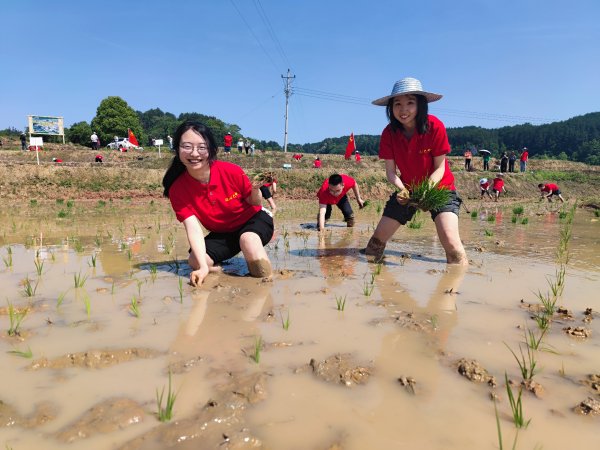 大伙擼起衣袖、脫下鞋襪,卷起褲腳,踩進田里,弓著腰下田運秧、拋秧、分苗、插秧,大家奮勇爭先,比質量、拼速度,一個個干勁十足,很快將近五畝的水田插上了綠茵茵的秧苗。插秧結束后,大家認真聽農技專家普及生態農業相關知識,對石灘大米的培育有了更加深入的認識。
