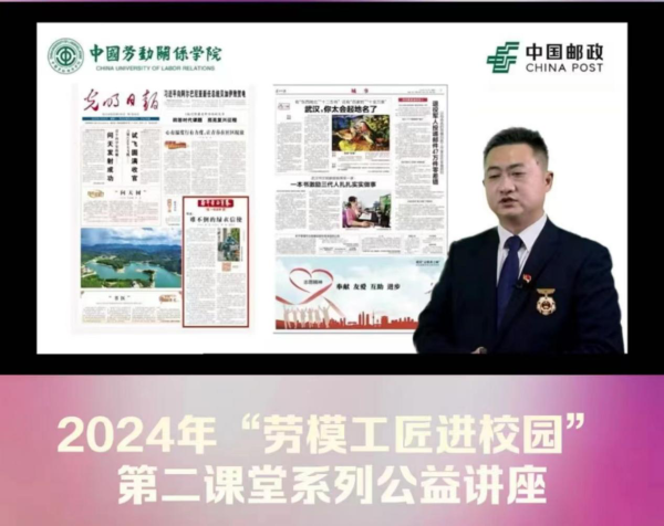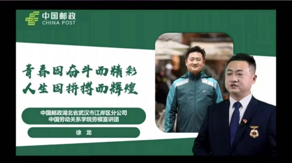 4月22日,由中國勞動關系學院主辦,教育部學生服務與素質發展中心指導的2024年勞模工匠進校園 第二課堂系列公益講座采取線上直播、線下宣講、課程展播形式開展,江岸區郵政分公司“全國五一勞動獎章”獲得者徐龍受邀參加。