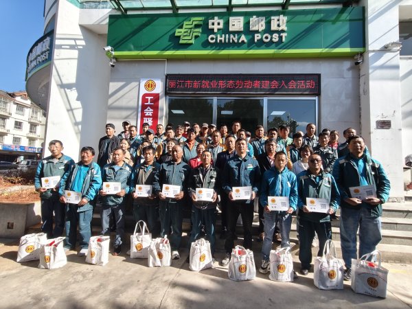 5月14日,麗江郵政新就業(yè)形態(tài)勞動者集中入會儀式在古城區(qū)象山西路郵政營業(yè)所工會驛站舉行,市總工會黨組成員、副主席楊春芳一行、麗江分公司工會主席符凌翔以及51名麗江郵政新就業(yè)形態(tài)會員代表、當(dāng)?shù)孛襟w共同參加活動。集中入會儀式上,市總工會向郵政100名快遞員、貨車司機(jī)、網(wǎng)約車司機(jī)、外賣員等新就業(yè)形態(tài)勞動者贈送價(jià)值1萬余元的入會暖心禮包。