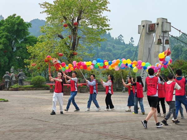 在巴南區雙河口鎮“鄉村印象”景區,員工通過豐富多樣的小游戲、學習非物質文化遺產“扎染”、品嘗農家菜、體驗索道及棧道,度過了值得回憶的充實一天。
