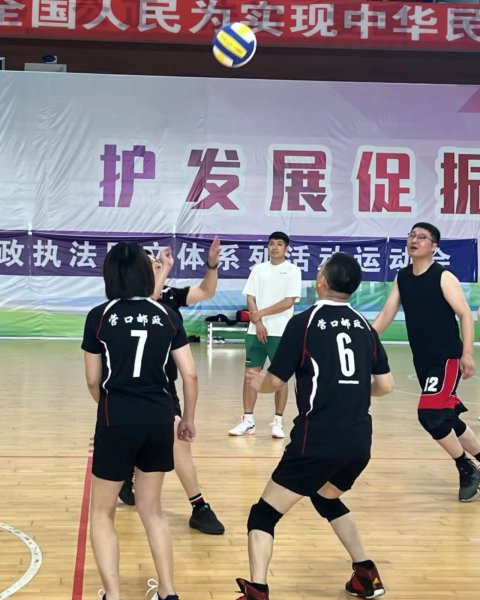 5月17日下午,營口郵政工會氣排球興趣小組與移動公司、人民銀行、工商銀行工會在奧體中心開展氣排球聯誼賽活動。