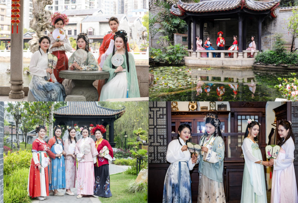 當員工們身穿漢服,興奮地走在古鎮歷史風貌展示館、梁園內,仿佛一場“行走”的漢服秀,經過的路人也似乎穿越到了漢朝。員工們在園中拍照打卡,感受著國風別樣韻味和魅力,也致敬和傳承著中華情、中華美。