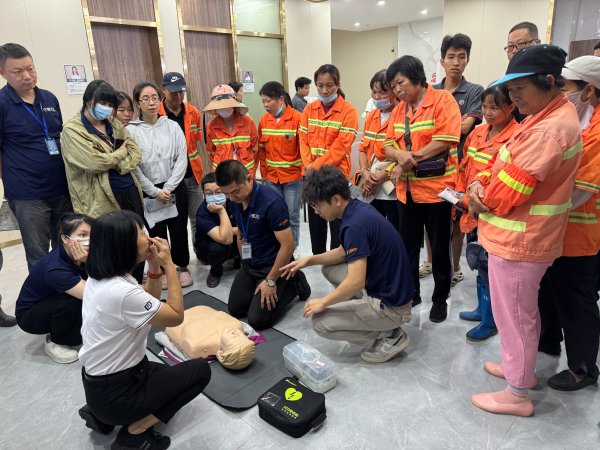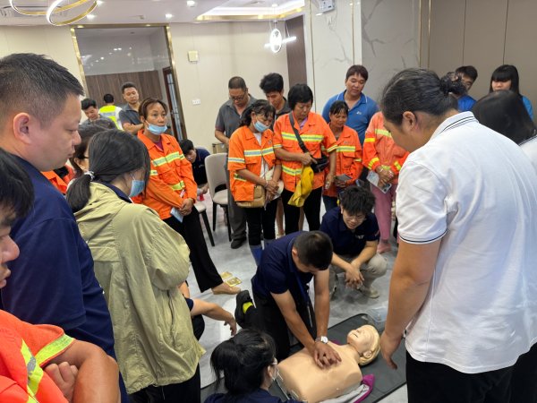 活動分為夏季防中暑安全知識講座和心肺復蘇急救培訓兩部分,茂名市120急救培訓中心馬老師從中暑的判斷、預防、處理等方面,現場為大家生動細致講解常見的急救知識以及心臟驟停的注意事項,從胸外按壓、維持循環、開放氣道等各個步驟進行了深入淺出、全面詳實的心肺復蘇搶救講授和演示,讓大家在遇到突發事件時能夠快速有效地進行應對。