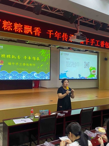 隨著端午節的臨近,5月30日中午12點,一場別開生面的手工制作香包活動在杭州郵政東站大樓如火如荼地展開。本次以手工制作香包為主題的活動是由杭州市郵政工會牽頭組織,與綜合辦后勤攜手共同舉辦,旨在讓參與的小伙伴們深入了解端午節的傳統文化,親手制作香包,體驗傳統手工藝的魅力,同時也為即將到來的端午節增添一份濃厚的節日氛圍。