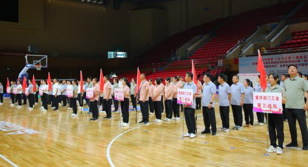 運(yùn)動(dòng)會(huì)上,四個(gè)部門(mén)工會(huì)組成10個(gè)戰(zhàn)隊(duì)共100余名運(yùn)動(dòng)員參與競(jìng)賽。在激昂奮進(jìn)的樂(lè)曲中,運(yùn)動(dòng)員們舉著隊(duì)牌,邁著矯健的步伐,高呼競(jìng)賽口號(hào),入列所屬方陣。隨著莊嚴(yán)的國(guó)歌響起,大家注視著國(guó)旗,唱響國(guó)歌,心中涌動(dòng)愛(ài)國(guó)的熱情。