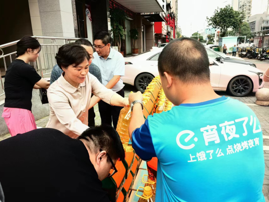 6月7日上午,邵陽市總工會依托郵政工會驛站開展“濃情端午·暖‘新’行動”,活動當天,在敏州東路和敏州西路2個工會驛站點,向100名環衛工人、快遞小哥、郵政投遞員送上粽子禮盒、精優大米、食用油等慰問品,讓戶外勞動者感受到來自工會“娘家人”的濃濃暖意。