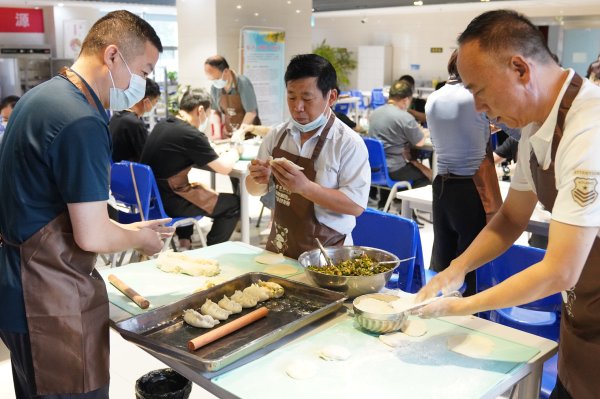6月7日早8點半,參與包菜角的職工便早早來到職工食堂,親自動手包菜角,大家老手帶新手,為了讓職工們中午吃上香噴噴的菜角干的熱火朝天,你追我趕,終于在午飯前炸出了一盆盆噴香焦脆的菜角,分發給前來就餐的職工。