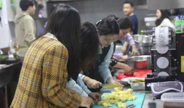 在職工食堂內,大學生們精氣神十足,紛紛使出看家本領和拿手絕活,揮起鐵勺,顛起大鍋,爭個五味俱全,其樂融融。此起彼伏的刀落案板聲、絡繹不絕的鍋碗瓢盆聲,在煎炒烹炸的煙火氣中,比賽現場飄香四溢。琿春市分公司領導班子也化身“家長”,為大學生們“開小灶”,添美食。剛出鍋的菜品香氣四溢,造型別致,大家紛紛拿起手機拍照留念。大學生們紛紛表示,這是入職以來吃的最香、最暖的一頓飯。
