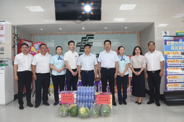 王總對本次調研慰問強調:在業務發展方面:一是奮力沖刺,確保時間、任務雙過半。二是創新轉型,推進企業高質量發展。三是強化理論武裝,促進黨建和業務發展深度融合。關愛員工方面要認真貫徹落實集團工會和省國防工會工作要求,雜實做好送清涼活動。特別是在戶外辛勤工作的廣大投遞員、攬投員、郵運司機等,把企業黨組織的關心、關愛送到基層職工心中;同時也要為職工“送安全、送健康、送法律、送文化”。