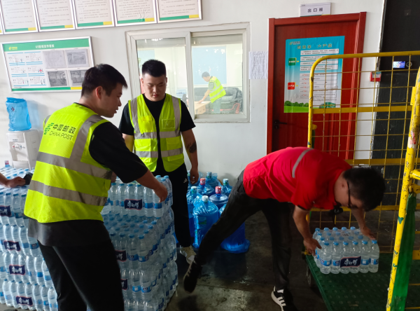 涼水、冰塊、綠豆湯......今日齊上場,下午4點開班前,1600瓶礦泉水和24個大型冰塊陸續送達郵件處理場地。為了讓每個網格區域和生產現場所有人員都能感受到絲絲涼意,該中心同外包公司共同將冰塊和涼水送至各作業區域。“生命安全永遠放在第一,今日現場所有生產人員每人至少5瓶水,我們保證飲用水充足,如果發現身體不舒服第一時間找網格長,我們還配備防暑降溫藥品。”在該中心出口車間班前會上,現場工會工作者協同管理人員還就安全事宜一一強調。該中心工會組織在日溫度達到35°及以上時向現場作業人員發放綠豆湯。
