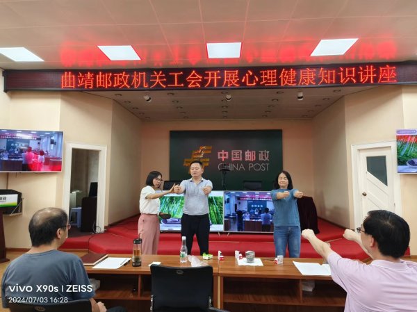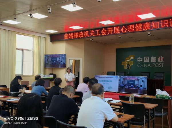 為深入推進“雙關心工程”,落實“為職工辦實事”活動要求,切實關愛職工身心健康,日前,曲靖市郵政工會邀請市華都醫(yī)院黨支部書記、國家級心理咨詢師陳英舉行了一堂題為“壓力管理與情緒調(diào)節(jié)”的心理健康講座課。