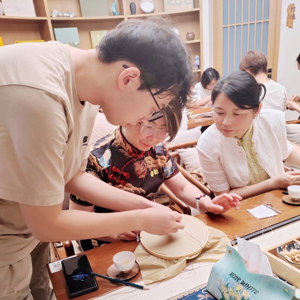 “顧繡,采用的是繡繪結合、以繡代畫的工藝,享有‘繡藝之祖’的美譽。”顧繡傳承基地的學生代表向大家介紹顧繡,“希望通過活動能讓更多人,欣賞到顧繡的精湛技藝,從而喜歡上顧繡藝術。”大家聆聽著悉心地講述,體驗上繃、劈線、穿針等顧繡技藝,繡制基本紋樣,感受著方寸間“絲細如發”“針如毫”“色如畫”的精巧微妙,用一針一線表達著對中華優秀傳統文化的熱愛。