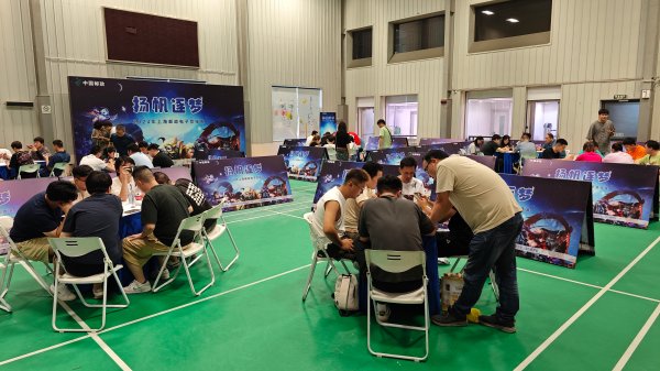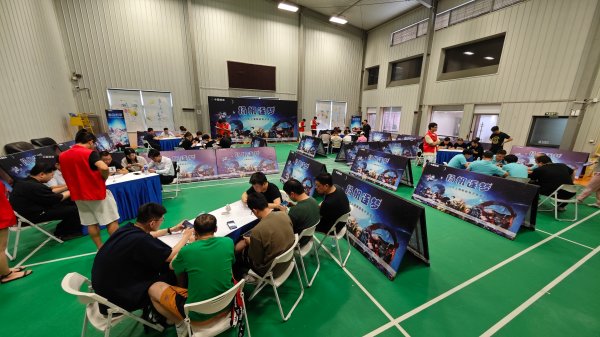 現場比賽分設候場區和競賽區。候場區不僅提供休息區域,還利用投影儀進行現場實況直播,并由專業游戲主播在現場進行比賽講解,極大的提升了現場體驗感。競賽區被規整的劃分為四個賽場。所有隊伍在工作人員引導下,依次落座,位居賽場兩角,展開捉對廝殺。