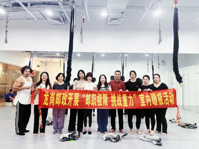 有效提升員工們的創業精氣神,充分體現出“健康生活、快樂工作”的理念,深圳龍崗郵政工會攜手專業蹦極機構,精心籌備了一場前所未有的極限盛宴——“郵躍極限 挑戰重力”室內蹦極活動。