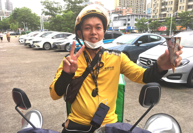 在各個活動現(xiàn)場,不時有快遞小哥、外賣配送員、出租車司機前來領(lǐng)取雪糕,大家紛紛表示:感受到了工會組織、郵政企業(yè)的溫暖。“我在附近配送站工作,一天里差不多有8小時在外面跑,及時穩(wěn)妥送達是顧客對我的要求;而我對工作、生活的期望也很簡單,安穩(wěn)踏實,今天一個甜筒就讓人很滿足了?!眮韰⒓踊顒拥呐渌蛦T王先生說。更有青年外賣員途經(jīng)現(xiàn)場時,不忘打卡留念,領(lǐng)取雪糕顧不上吃,就把好消息發(fā)到了工友群,快速“搖人”。