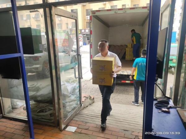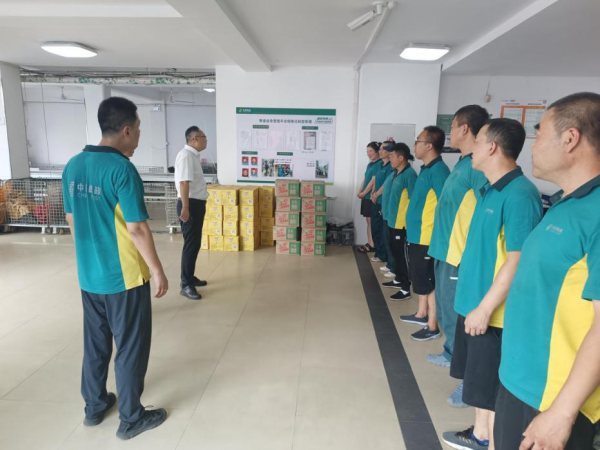 2024年8月9日下午,市公司副總經理李哲勇、工會主席王 江等分別代表市公司黨委和工會,冒著酷暑到各投遞班組和分揀現場走訪慰問,為一線員工送去飲料等防暑降溫物品。