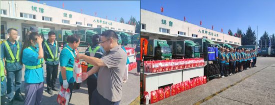 與此同時,赤峰市郵政工會林樹東主席帶隊奔赴網路運營中心、投遞站點等地親切看望奮戰在一線的郵政職工,為他們送去礦泉水、西瓜、藿香正氣水、綠豆湯、雨衣等各類防暑物資,并專門實地查看職工食堂、宿舍,檢查冰柜、空調、飲水機等設備運轉情況,叮囑食堂負責同志要改善職工伙食,合理調配菜品,每天推出一道夏季防暑餐食,能夠讓職工在忙碌工作的同時享受到一絲清涼。