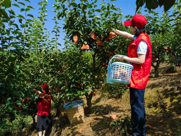 果園內,一個個碩大的梨子掛滿枝頭,果香四溢。志愿者們擼起袖子穿梭在梨園內,小心翼翼地將一個個梨子摘下,裝入筐中。大家采摘、選果、封箱、裝車,干得熱火朝天、不亦樂乎。雖滿頭大汗,但員工們紛紛表示,多干一會,幫種植戶多摘幾筐,就算辛苦一點也值得。