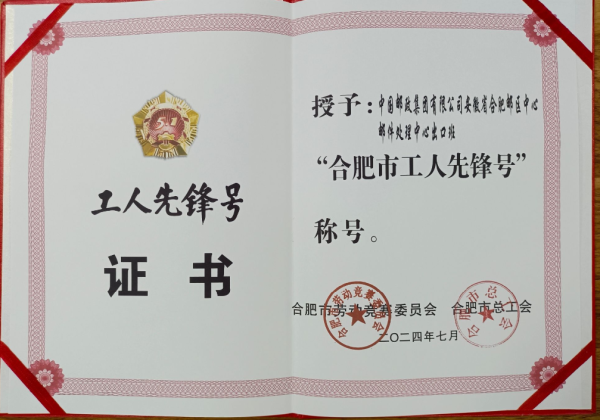 近日,合肥郵區(qū)中心郵件處理出口班榮獲“合肥市工人先鋒號”稱號,實現(xiàn)市級、省級工人先鋒號榮譽雙豐收。 近年來,合肥郵區(qū)中心堅持黨建引領(lǐng),聚焦主責主業(yè),做到“六個全力”,年處理量超8.3億件,各項關(guān)鍵指標均位于全網(wǎng)前列。積極推動落實數(shù)字化處理中心建設(shè)、郵區(qū)中心規(guī)范化改革等試點工作,先后完成28個數(shù)字化應(yīng)用場景驗證,并在規(guī)范化改革驗收中排名全國第3位。推動“人員、區(qū)域、容器和生產(chǎn)輔助管理”深度色彩化管理,經(jīng)驗做法向全網(wǎng)推介。積極打造行業(yè)“國家隊”責任擔當,關(guān)鍵時刻能聽指揮、拉得出,危急關(guān)頭能沖得上、打得贏,圓滿完成各項保通保暢工作,為打造“皖美郵政”貢獻力量。