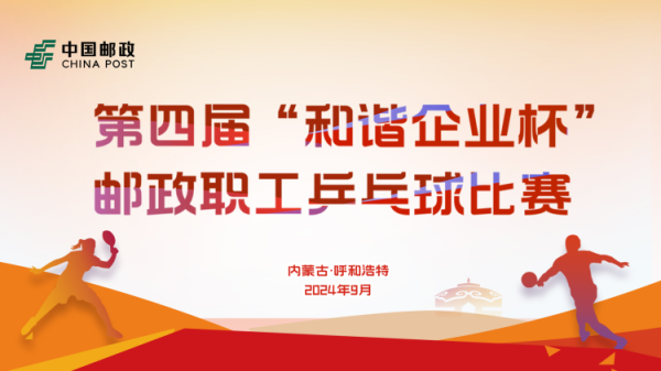 2024年9月11日至13日,由中國郵政集團公司、中國郵政集團工會主辦的第四屆“和諧企業杯”郵政職工乒乓球比賽在內蒙古呼和浩特市隆重開賽。為期3天的比賽里,來自全國郵政系統36支代表隊激烈角逐。
