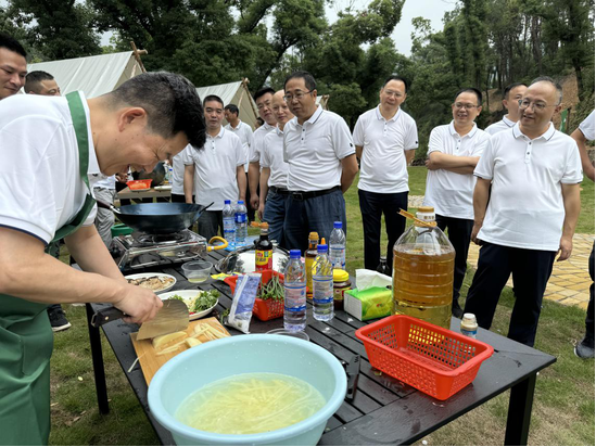 隨著主持人一聲令下,選手們立馬忙碌起來,緊張氛圍瞬間拉開,切菜、熱油、翻炒……大家互不相讓,各顯神通,現(xiàn)場飄出陣陣香味,色香俱全的拿手菜引來現(xiàn)場觀眾的連連叫好聲,場外應(yīng)援的“啦啦隊”將活動氣氛不斷拉高。