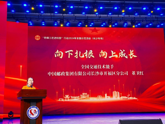 9月20日,由長(zhǎng)沙市總工會(huì)主辦的“勞模工匠進(jìn)校園 匠心傳承育棟梁”勞模工匠進(jìn)校園宣講活動(dòng)走進(jìn)長(zhǎng)沙學(xué)院。長(zhǎng)沙市郵政勞模董衛(wèi)紅榮幸加入宣講團(tuán),與同學(xué)們面對(duì)面交流,分享在郵政領(lǐng)域寄遞板塊崗位工作中創(chuàng)新勞動(dòng)的動(dòng)人事跡。
