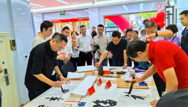 中國書法家協會會員錢學文、杭州錢江新城書畫院院長方群輝、浙江省書法家協會會員葛敏、全國郵政書法美術協會會員李曉剛、浙江省書法家協會會員王一的作品都受到了在場郵政金融客戶的熱捧。整個開業現場共送出書畫作品58副,繪畫作品62副,把開業儀式的氣氛推向了高潮,開業期間網點新增儲蓄余額1200多萬元。