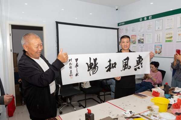 “原本以為的開業活動是過來領米和油,沒想到還有書法家來了,真是開心和意外。” 松陽城南支行客戶李阿姨手里拿著浙江省書協會員、省書協篆書委員會委員、岱山縣書法家協會主席馬優夫現場創作的書法作品《修心》,興奮地表示。“這是我這個農民見到過最厲害的書法家了,我要把這幅字掛在我兒子的新房子里。”