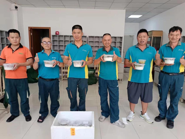 在南灣分公司職工小家,工作人員忙著洗菜、切菜、炒菜……經過大家的共同努力,白切鴨、釀豆腐、老火靚湯等一道道佳肴陸續完成。這些美食被分裝進飯盒,并在用餐時間前送到了各個基層網點。員工們準時享用到了美味的飯菜,對工會的周到安排贊不絕口。