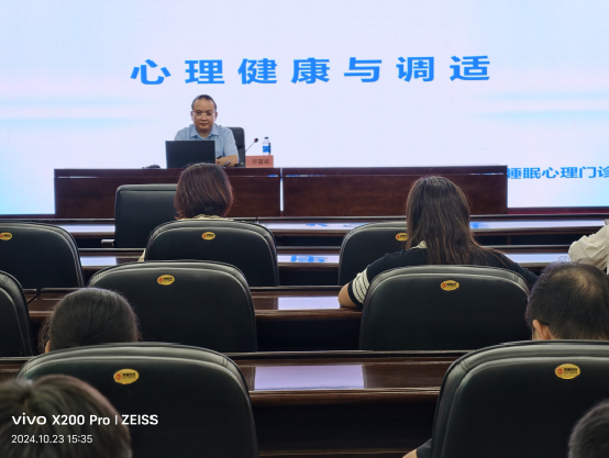 此次講座邀請了防城港市第一人民醫院心理學專家許富斌主任以“心理健康與調適”為主題,圍繞干部職工的學習、工作、生活等方面,進行了心理健康知識講座。許主任用極具親和力的語言深入淺出地從心理健康的標準、心理壓力的產生、影響心理健康的因素、如何進行自我心理調適等方面為干部職工進行講解,引導大家運用科學方法進行自我調適,合理管控情緒,保持健康向上的心理狀態,激發干事創業的熱情與干勁。