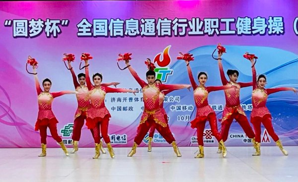 2024年10月14日至10月17日,由中國信息通信體育協會主辦,中國郵政、中國電信、中國移動、中國聯通集團公司,中國鐵塔股份有限公司協辦,濟南開普體育健身有限公司承辦的2024年“圓夢杯”全國信息通信行業職工健身操(舞)賦美賽,在山東省煙臺市龍口成功舉辦。來自中國郵政、中國電信、中國移動、中國聯通集團公司,中國鐵塔股份有限公司的21支代表隊超200名運動員、裁判員和工作人員參加本次賦美賽。